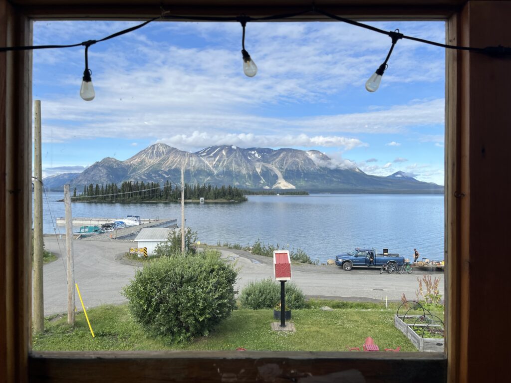 On July 26th, Kayla and I chased the good weather “down south” to Atlin. The small town in British Columbia is one of the most beautiful places in the region, and is home to one of our favourite places. Kershaw’s Cafe is located in a historic building which has been beautifully kept. It includes some of the best coffee in the region (with a roast by Atlin Mountain Coffee), and freshly-baked French-style pastries. If that isn’t enough, the view is spectacular!