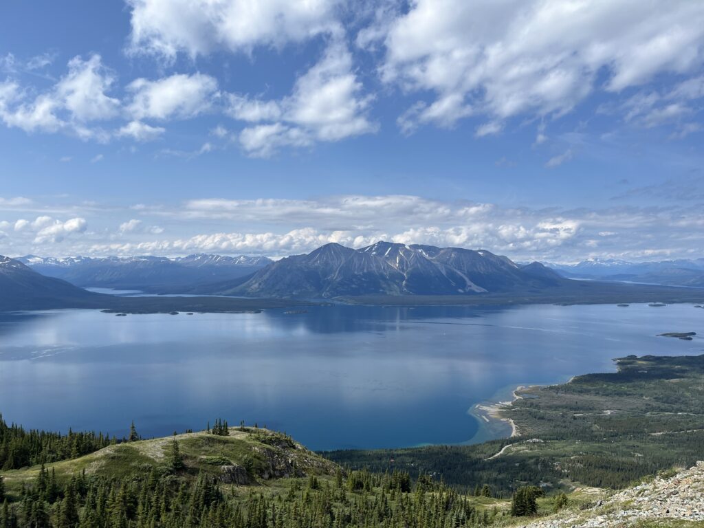 The trail is well maintained and decently travelled. We were there on a nice day and cam across a good number of people on the trail, but it never felt full or crowded. We had probably 20 minutes alone at the top of the trail (a false summit). There are gorgeous views of Monarch Mountain itself, plus Atlin Lake. The first picture shows St. Theresa Island. It blows my mind that the mountains are an island in Atlin Lake!