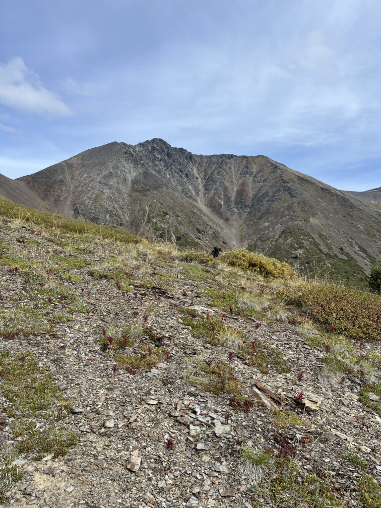 Just up the trail we came across a black bear who had the same idea! He looked at us, wandered across the trail, and went into a different berry patch. Unbothered and in his lane, with a good amount of fat on him. We took the bear spray into our hand, but never felt like we were close to having to use it with them.