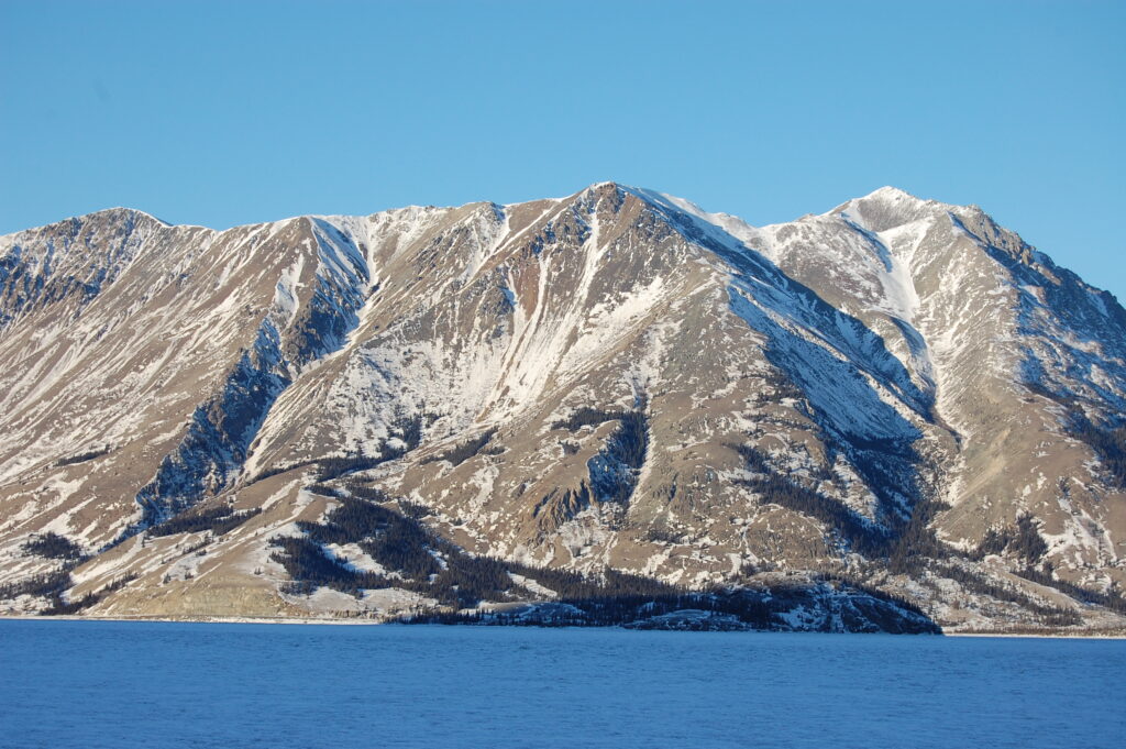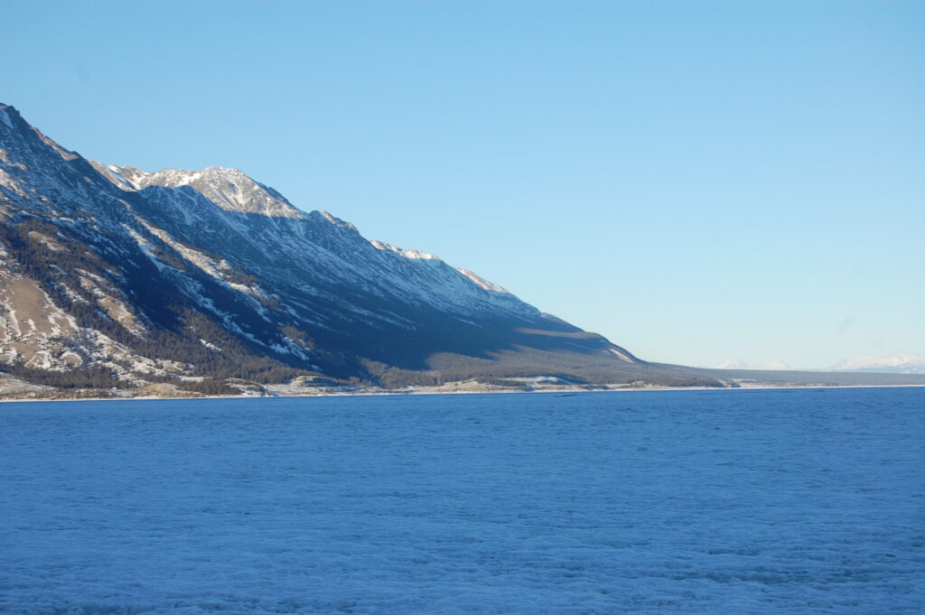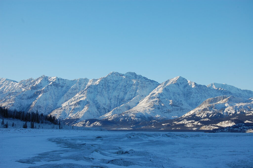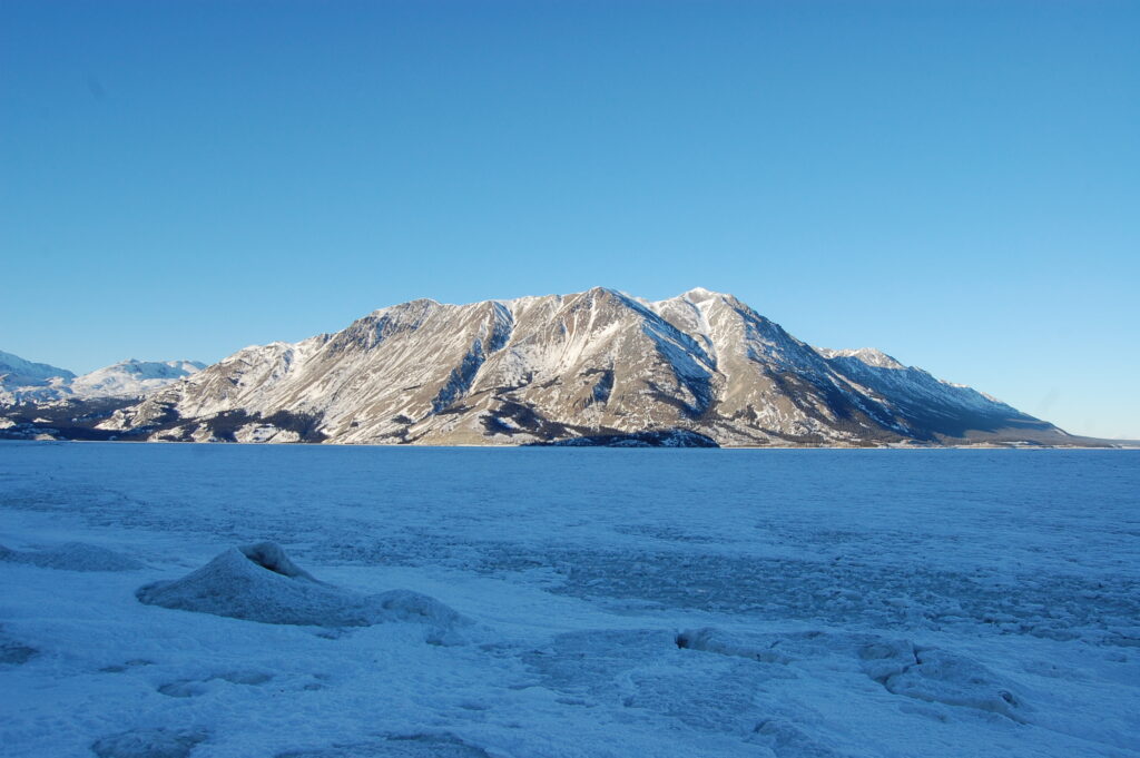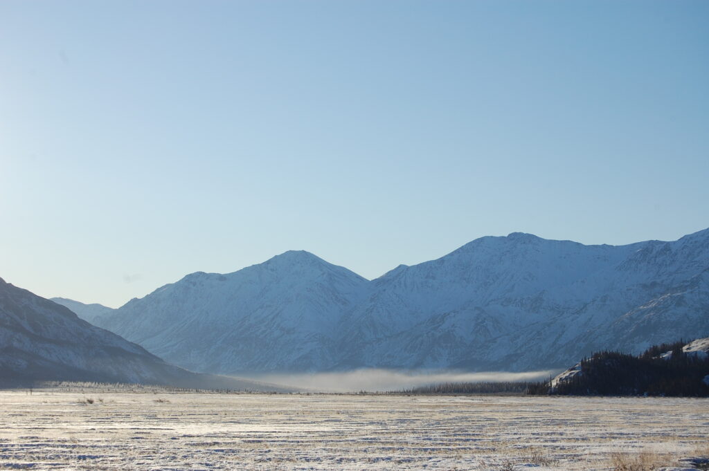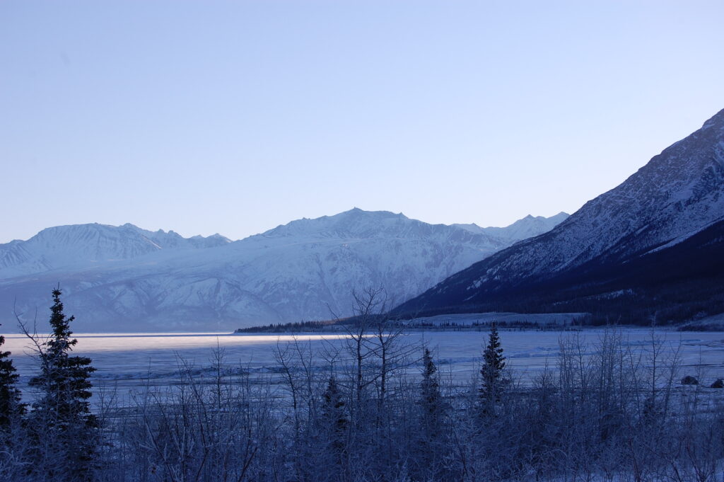 I also love the view that this pullout gives you of the mountains down the Slims River valley. With the frozen lakeshore, it makes quite the scene.