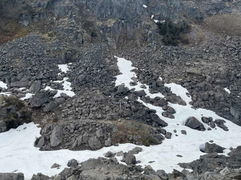 Next, just before the summit, you can see part of “the trail of 98” – where the stampeders wore down the trail, still visible with discarded equipment.