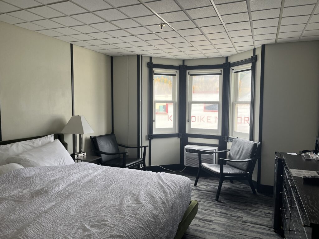 Most of the flight in was cloudy, so no photos the rest of the way, or of Dawson. My colleague and I were picked up at the airport by the shuttle, which took us to our hotel at the Midnight Sun in downtown Dawson. The room was nice and clean, roomy, and with a comfortable bed. I’d definitely stay here again.