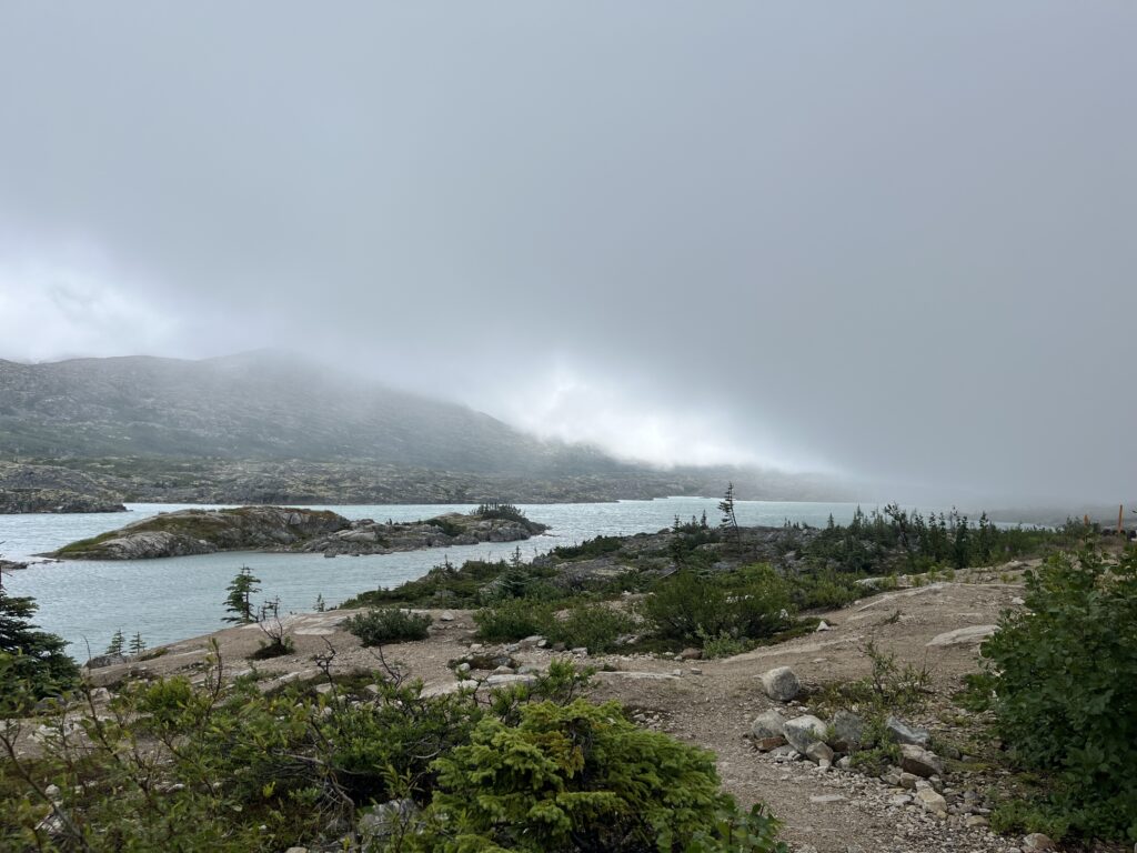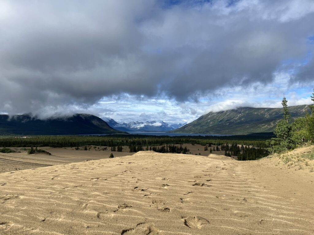 Skagway is one of our other favourite places to take visiting friends. While the weather wasn’t looking the best in the morning, it wound up being more than good enough! Of course, no visit south from Whitehorse is complete without a stop at the Carcross Desert. While it was cloudy, they added a little bit of moodiness to the scene. Lake Bennet is in the distance here.